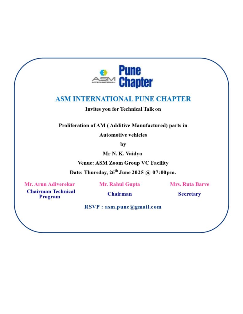 Topic: ASM & IEIPLC Tech Talk on Understanding 3D Printing in Metals by Mr Rao