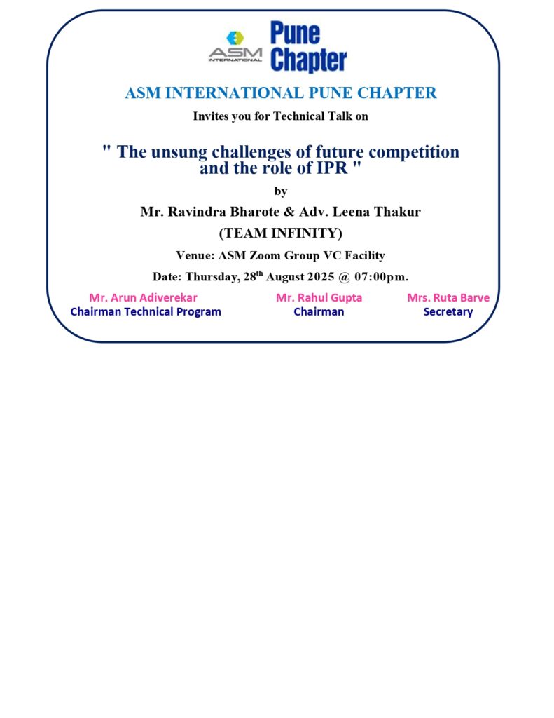 Topic: “The Unsung Challenges of future competition and the role of IPR” with Mr. Ravindra Bharote & Adv. Leena Thakur (TEAM INFINITY)