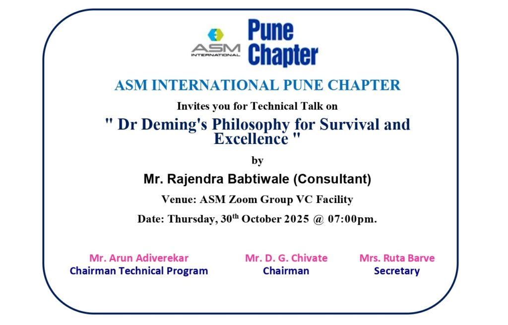 Topic: “Dr Deming’s Philosophy for Survival and Excellence ” by Mr Rajendra Babtiwale (Consultant)